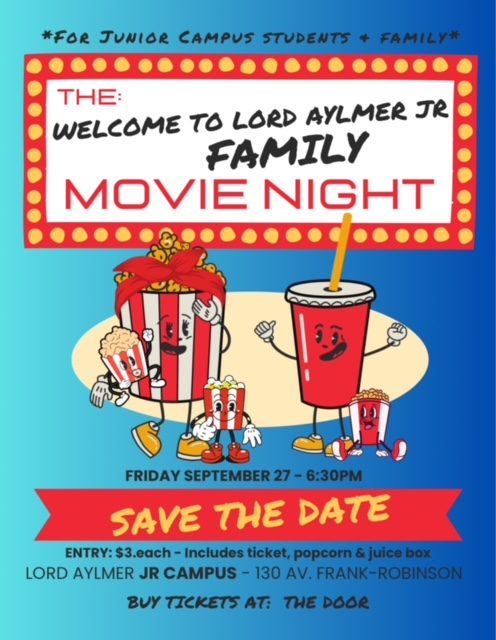 - Family Movie Night at Lord Aylmer – Junior Campus*