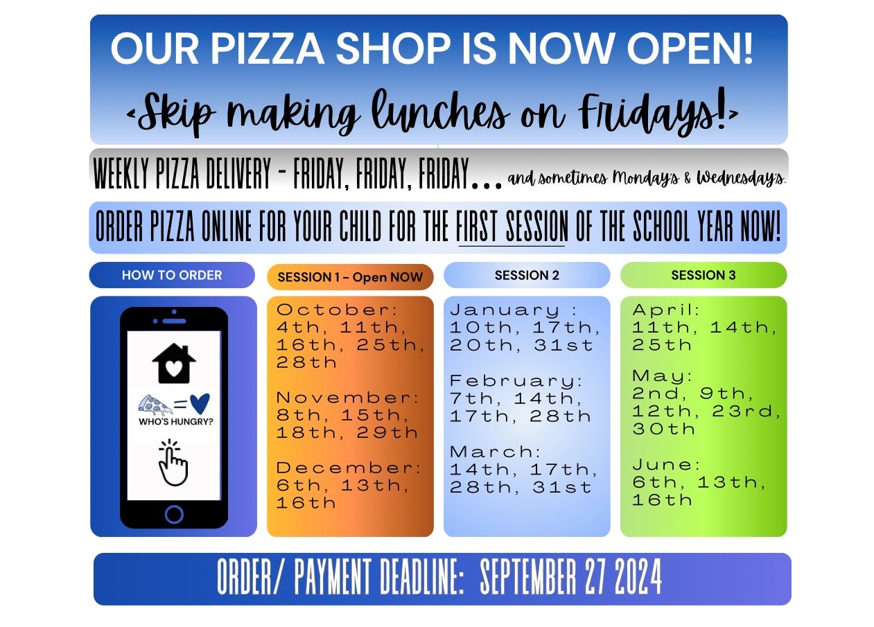 - This year, Pizza Lunch Days are divided into 3 (separate) order sessions.