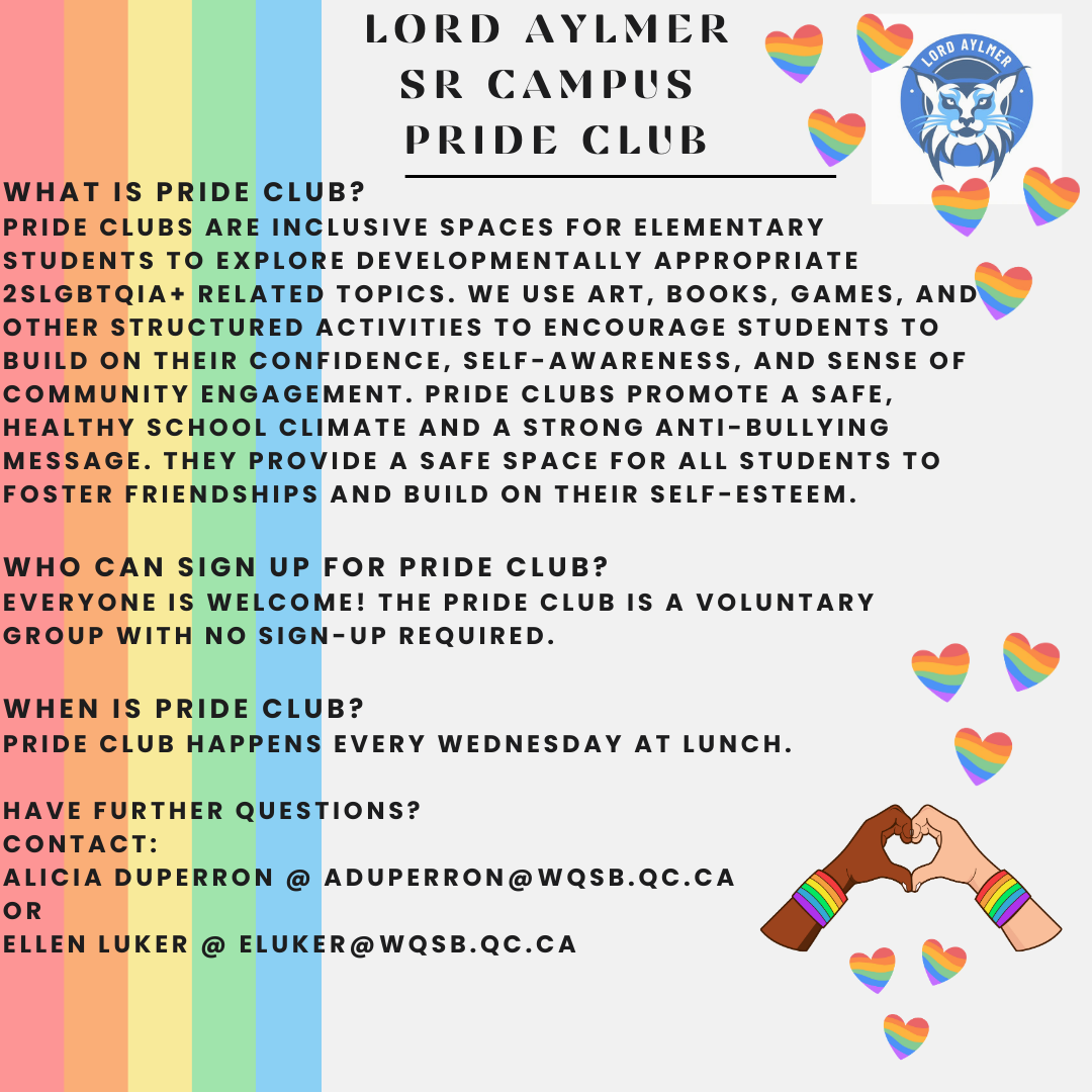 - Veuillez consulter les dépliants ci-joints concernant les clubs parascolaires qui débuteront au campus SR – Yoga, Dessin et Club Pride.