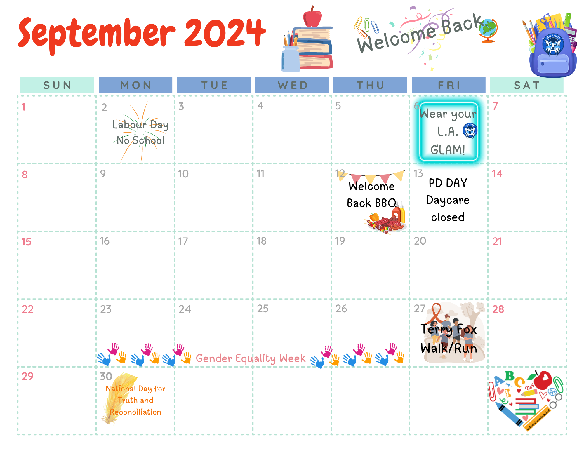 - Friendly reminder that September 13, 2024, is a PD Day – there are no classes and daycare is closed.