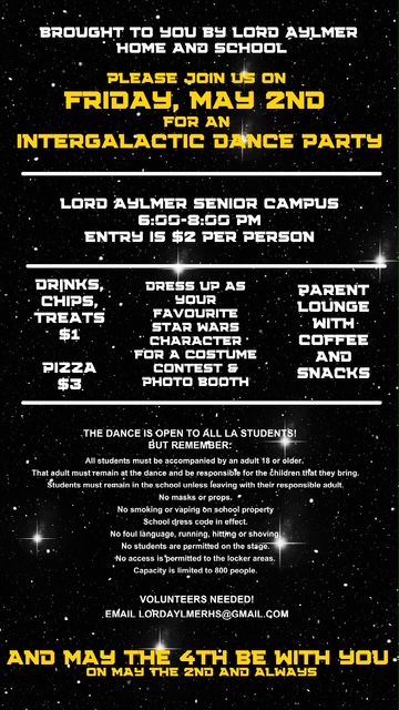- Mark your calendars for LA Home & School annual Spring Intergalactic Dance party on Friday, May 2nd.